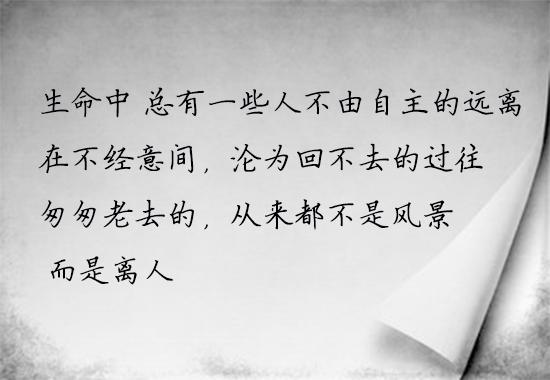 1、生命中,总有一些不由自主的远离,在不经意间,沦为回不去的过往。匆匆老去的,从来都不是风景,而是离