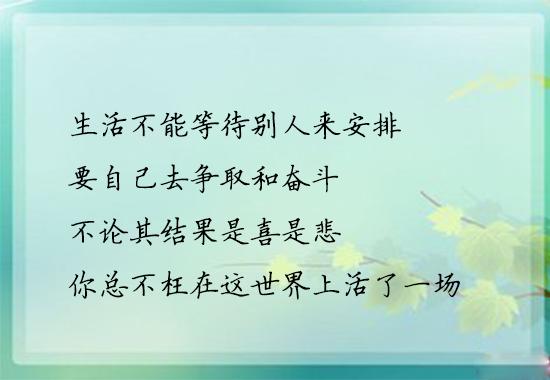 2、生活不能等待别人来安排,要自己去争取和奋斗;而不论其结果是喜是悲,你总不枉在这世界上活了一场