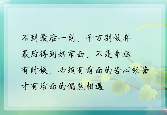 1、不到最后一刻,千万别放弃。最后得到好东西,不是幸运,有时候,必须有前面的苦心经营,才有后面的偶然相遇