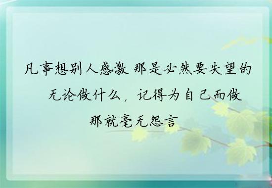 7、凡事想别人感激,那是必然要失望的,无论做什么,记得为自己而做,那就毫无怨言