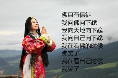 1、佛自有信徒,我向佛向下跪,我向天地向下跪,我向自己向下跪。我看佛的时候,佛笑了。我在看自己的时候