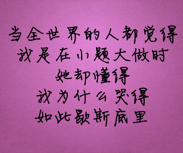 当全世界的人都觉得,我是在小题大做,她却懂得,我为什么哭的如此歇斯底里。