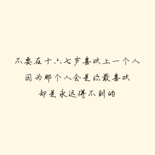 不要在十六七岁喜欢上一个人因为那个人会是你最喜欢却是永远得不到的还是很想跑很远的路去看一个很爱的人我